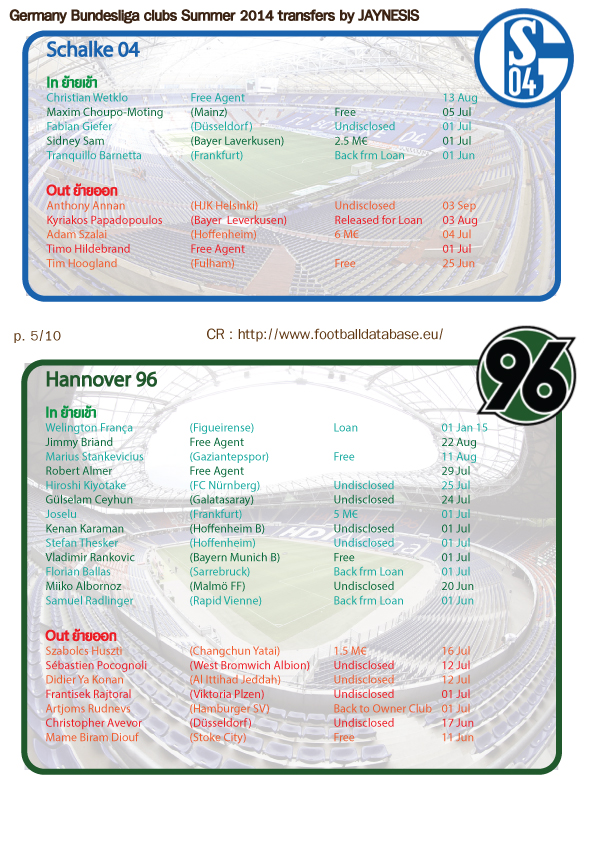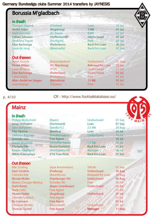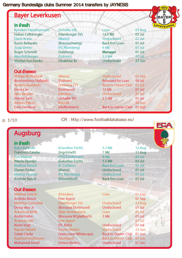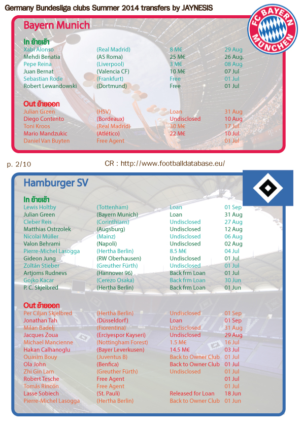 สรุป ตลาดซื้อ-ขาย Bundesliga ช่วง Summer 2014