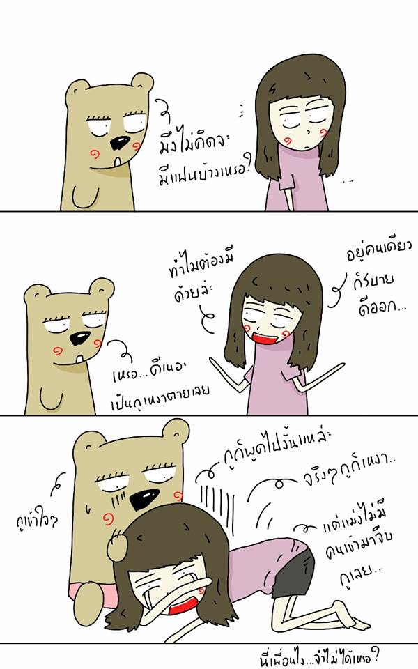 ก็จะบ่นๆอยู่นั่นแหละว่าอยากมีอยากมี แต่พอโดนอีกฝ่ายขอคบจริงๆกลับกลัวไม่กล้าคบ เลยต้องปล่อยคนคุยไป ส่วนตัวเองก็โสดต่อไป //เรื่องนี้เป็นเรื่องเล่าของน้องคนหนึ่งนะ เรื่องนานมาแล้วน้องเขาเล่าให้เราฟัง อ