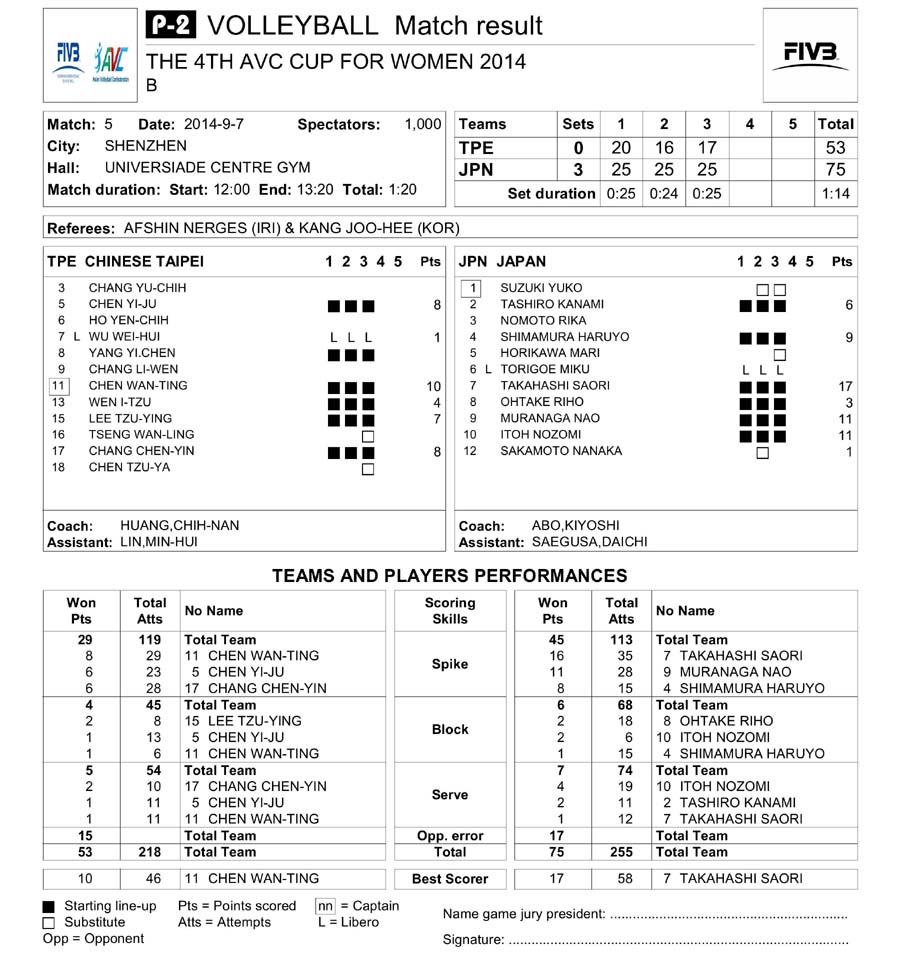 Match Result - Team and Player Performances : Japan vs Chinese Taipei