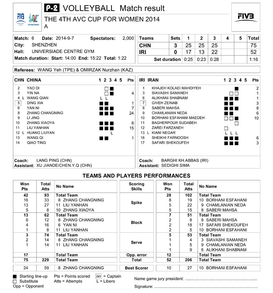 China – Iran 3-0 : 25-17, 25-13, 25-22