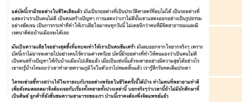 แต่มีรอยด่างจากคนอื่นไม่คิดว่าตัวเองเป็นคนดี ไปทำให้บ้านเมืองวุ่นวาย (แล้วที่ทำนะ มันทำให้บ้านเมืองวุ่นวายจริงมั้ยละ)