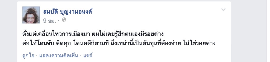 แต่ไม่เคยคิดว่าเป็นรอยด่าง แต่เป็นต้นทุนที่ต้องจ่ายเพื่อการเคลื่อนไหวทางการเมือง