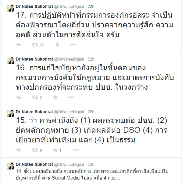 ส่วน พล.ท.ดร.พีระพงษ์ มานะกิจ กรรมการ กสท. เปิดเผยว่า การฟ้องต้องดูข้อเท็จจริง ซึ่งเป็นไปตามกระบวนการของศาลอยู่แล้ว และการฟ้องก็เป็นเรื่องปกติ พร้อมยืนยันว่าไม่ทำให้การทำหน้าที่ของกรรมการ กสท. หวั่นไหว