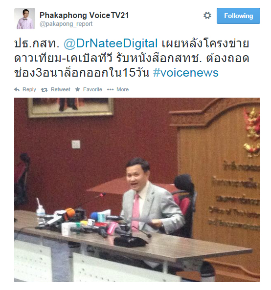Phakaphong VoiceTV21 @pakapong_report 25 นา25 นาทีที่ผ่านมา https://twitter.com/pakapong_report กสท.ให้ทำหนังสือเตือนช่อง 3HD ช่อง 7HD และช่องเวิร์คพอยท์ ห้ามโฆษณาเกินเวลา ฝ่าฝืนปรับ1 ล้านบาท แ
