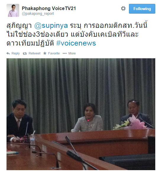 การประชุมวันนี้คือ ส่งเรื่องให้ คสช. อธิบายมาว่าประกาศฉบับที่ 27 เจ้าปัญหานี่เอามาอะเซเรเฮกับประกาศของ กสทช. ได้หรือไม่ .. สรุปว่า .. ไม่สรุป 555+ อำนาจลึกลับนี่มันมหัศจรรย์จริง ๆ ช่องบ้าอะไรเส้นใหญ่