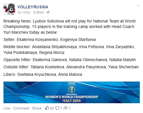 Breaking News: Lyubov Sokolova will not play for National Team at World Championship