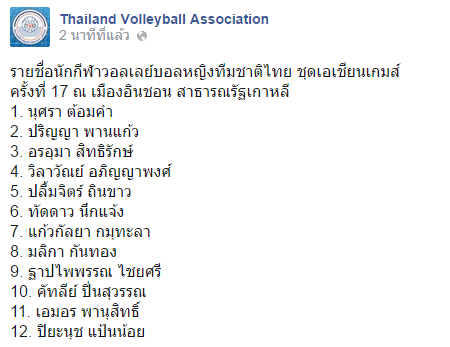 รายชื่อทีมชาติไทยชุด อชก อย่างเป็นทางการ