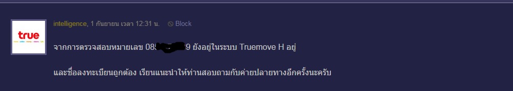 ส่วน TRUE ก็ไม่ยอมปล่อยสัญญาณ เพิ่งจะโทรมาทั้งที่ทราบเรื่องตั้งแต่วันที่ 1