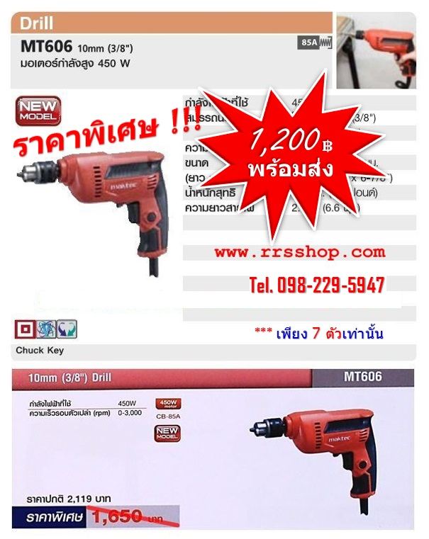 ลดถล่มราคา 1200฿ พร้อมส่ง!!! สว่านไฟฟ้า Maktec รุ่น MT606 ขนาด 10mm 3/8" (450w) เพียง 7 ตัวเท่านั้น!!!