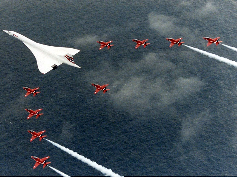 ใช่แล้วครับ มันคือเครื่องบินพาณิชย์นามว่า "คองคอร์ด" ที่เร็วเหนือเสียและมีความเร็วปกติที่2158km./hr.เคยถูกใช้จนถึงปี 2003 และรูปนี้ก็เป็นเที่ยวบินเกษียณอายุ ของเจ้าเครื่องบินประเภทนี้ครับ