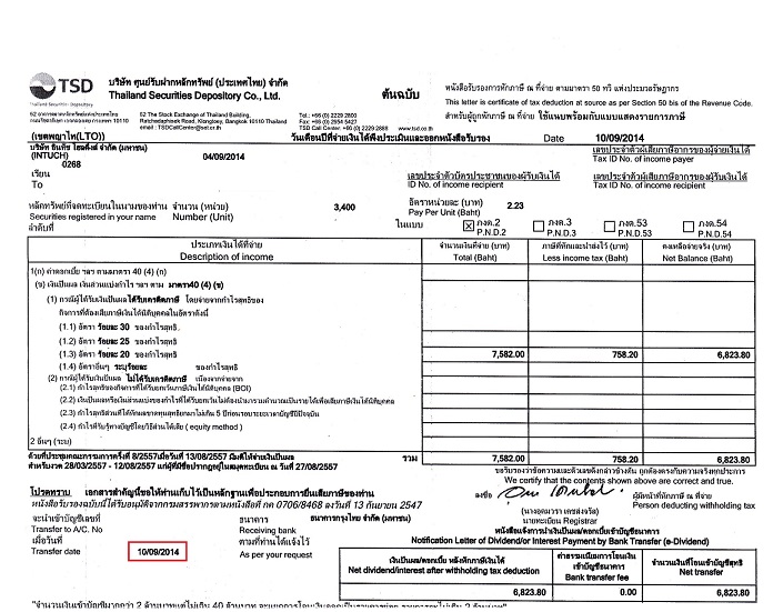 วันนี้รับปันผล intuch 2 บาทยี่สิบสามสตางค์ก็ ok อยู่นะ
