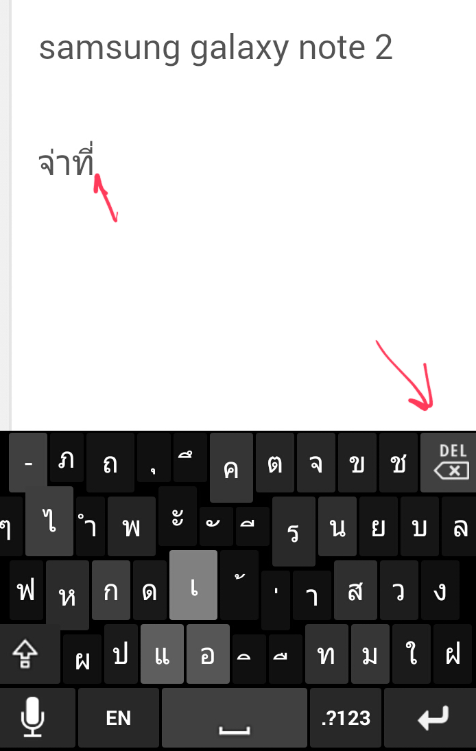 ผมใช้ Note 2 เวลาพิมพ์ผิดแล้วกด del เพื่อลบทีละตัว แต่ลบไม่ได้ต้องครอบทั้งคำก่อน แล้วกด del ถึงลบได้