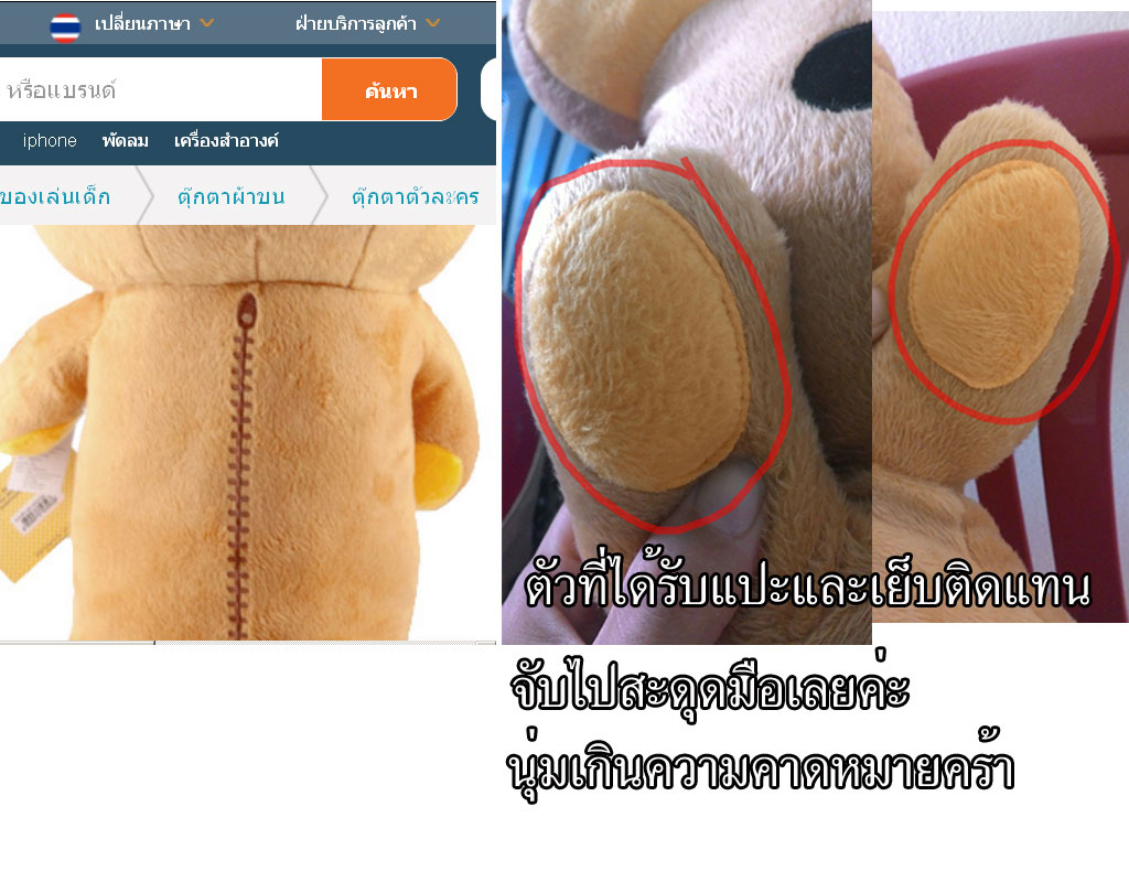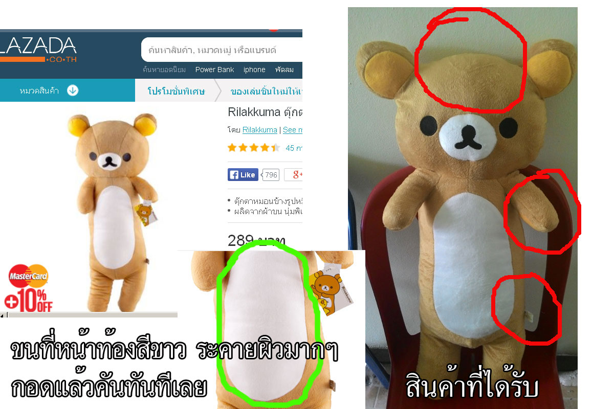 เราสั่งตุ๊กตาคุมะ จาก Lazada มาค่ะ แต่ตัวที่ได้รับ ช่างแตกต่างจากในรูปที่เว็บ