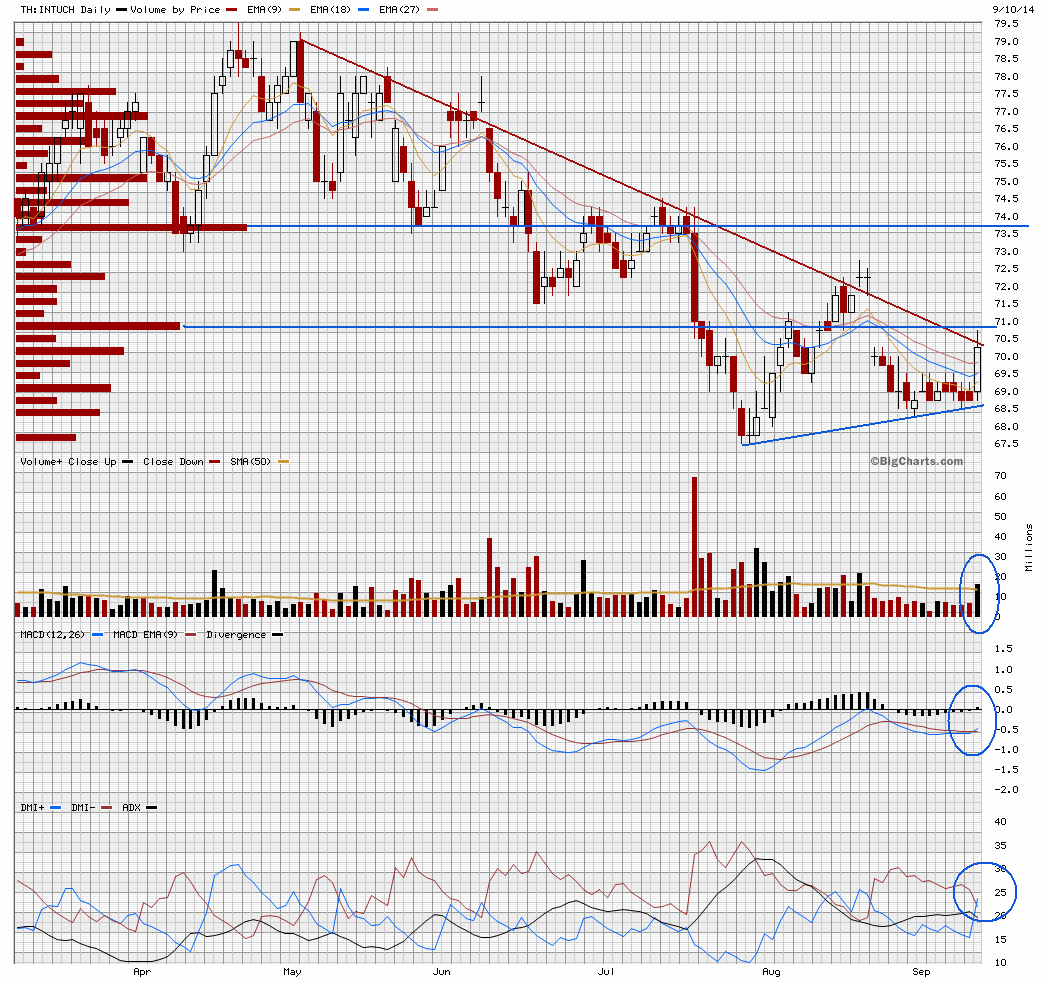 วิเคราะห์กราฟเทคนิค Intuch วันนี้ 10/09/2557