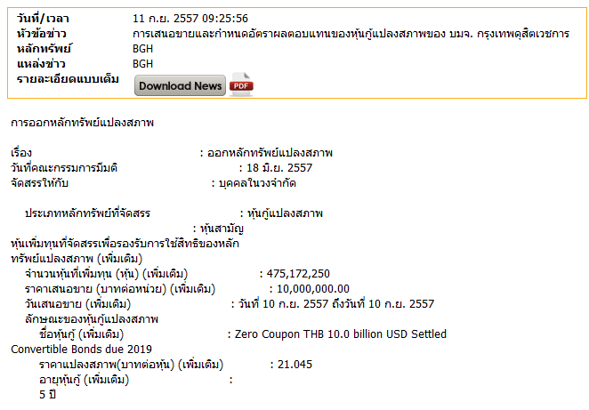 ข่าวนี้ที่แจ้งตลาดหลักทรัพย์ จะทำให้ BGH ลงไหมครับ