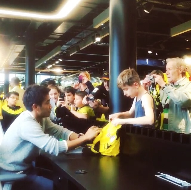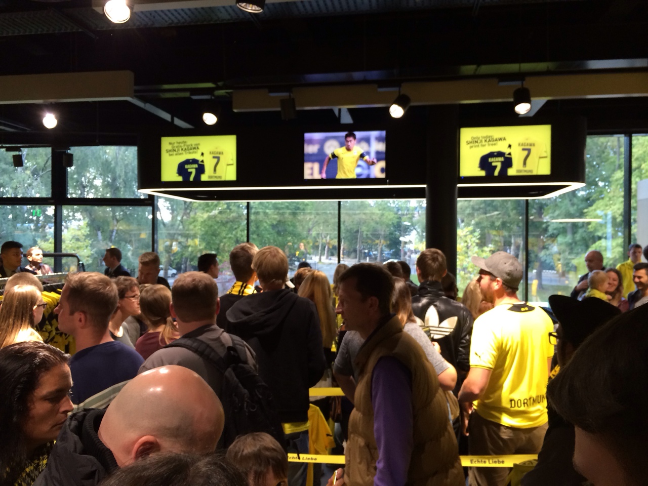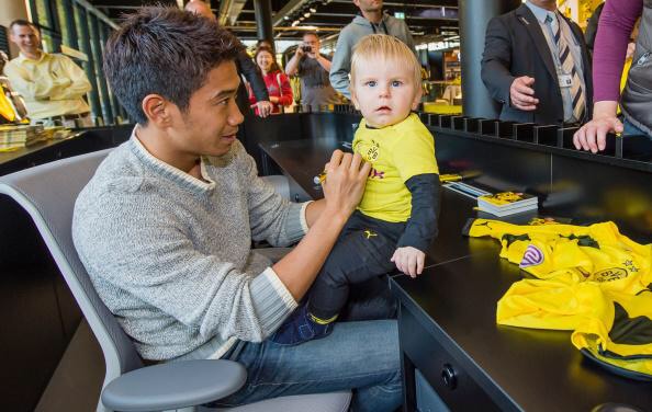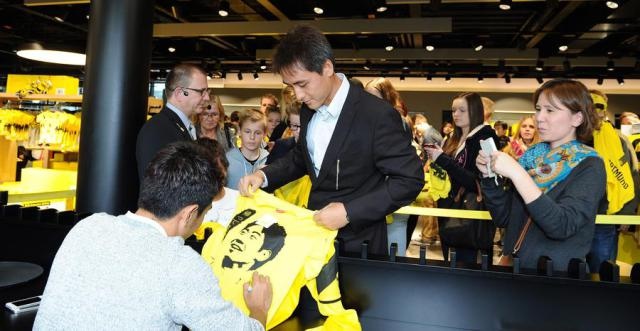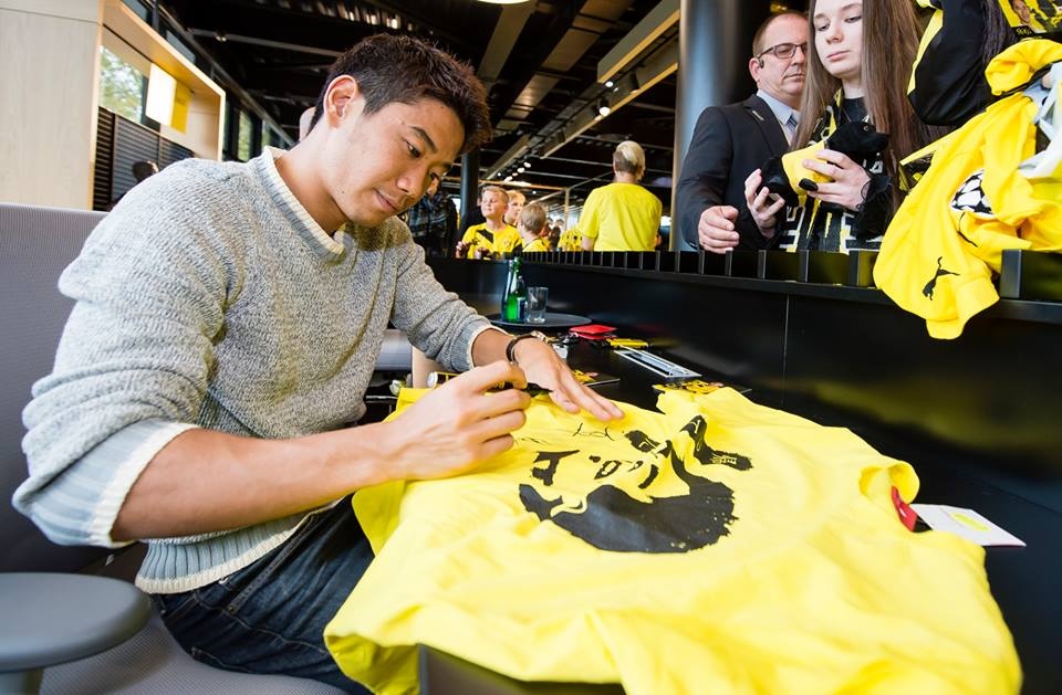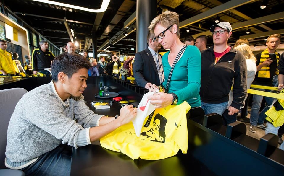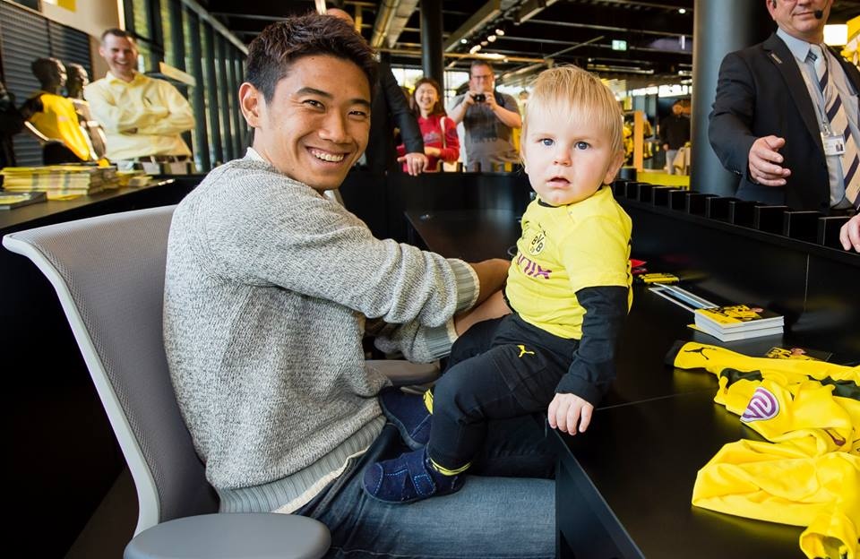 ↣ Shinji Kagawa arriving for the signing session at BVB FanWelt