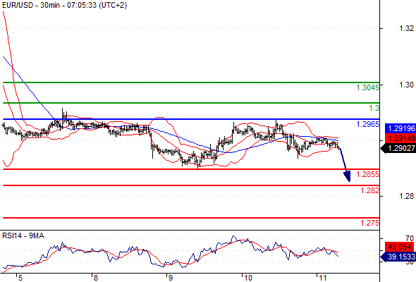 Our preference: Short positions below 1.2965 with targets @ 1.2855 & 1.282 in extension.