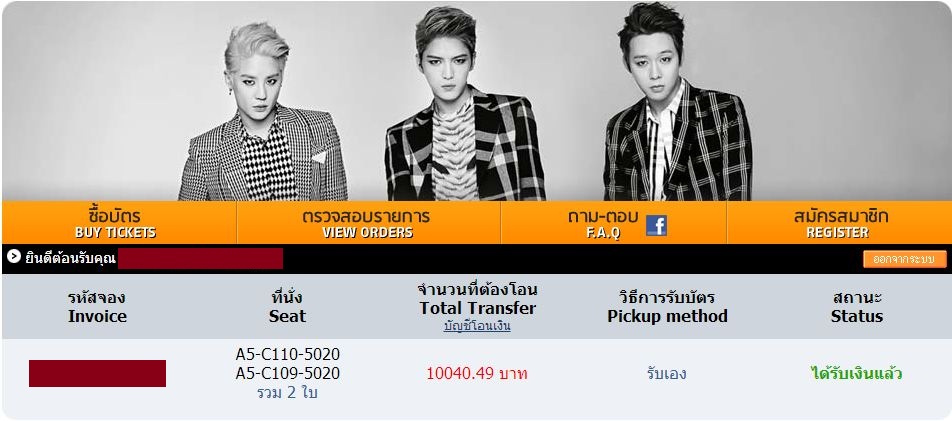 ขายบัตรคอนเสิร์ต JYJ Asia Tour Concert in Thailand 2014 (Zone A5)