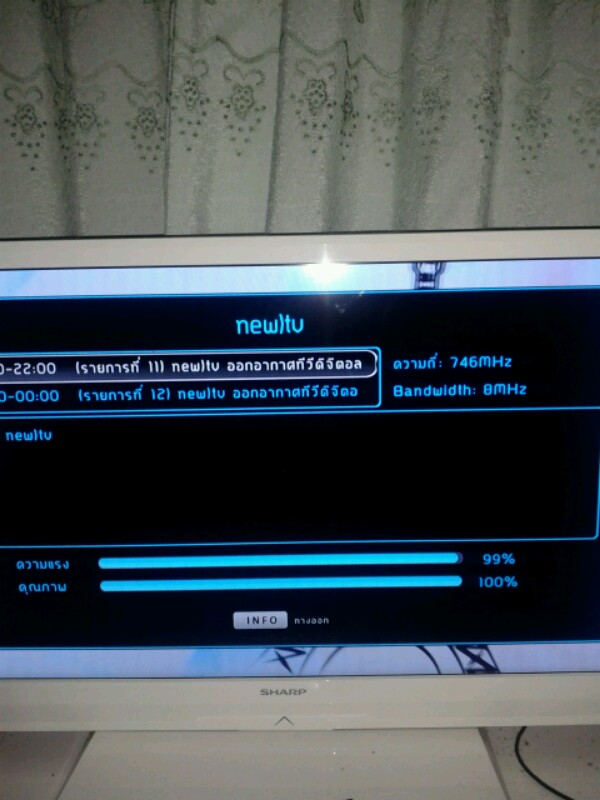 คือ ทีวีผมจูนหาสัญญาณทีวีดิจิตอล ได้ 4Mux มีช่อง30ช่อง ดูได้ 27ช่อง ยังไม่ออกอากาศ 3ช่อง ผมว่ามันไม่ครบ เหมือว่ามันขาด Mux ของNBTไปครับ เพราะตอนนี้ดูNBTที่ ส่งมาจาก MCOT ได้อย่างเดียว ตามรูปครับ.....