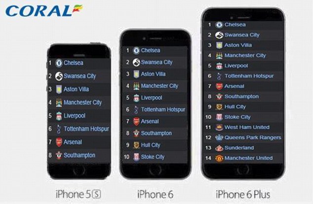 Daily Mail เเขวะว่า ให้สาวกทีมเเมนยู ซื้อ IP6+ ใช้เพราะจะได้เห็น ทีมรักของตัวเองในตารางคะเเนน บอกได้คำเดียวเลยว่า เหล่าสาวกนั้น