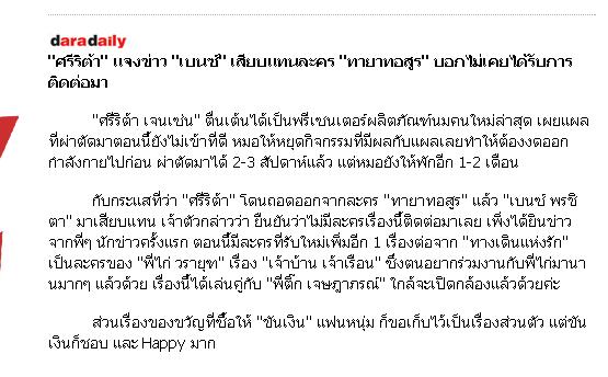 "ศรีริต้า"ยัน "เบนซ์" เปล่าแย่งบท"คุณยายวรนาฏ" ยันไม่เคยได้รับการติดต่อให้เล่น"ทายาทอสูร"