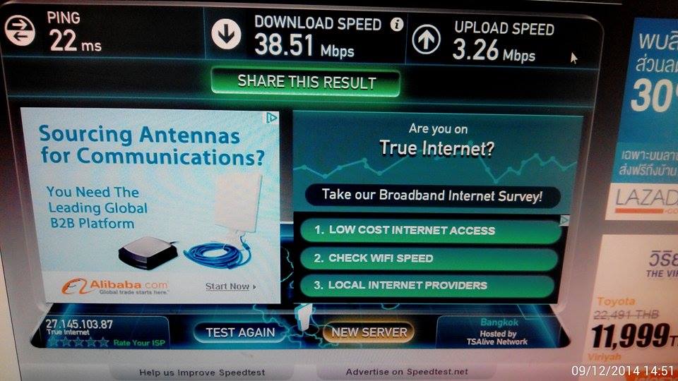 จึงแจ้งทาง Facebook ช่างก็มาดำเนินการให้ ความเร็วก็ยังไม่ดีขึ้น เช็คกับเวปนี้ครับ