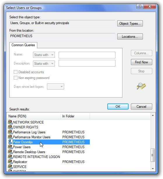ซึ่งผมพบว่าการกำหนดสิทธ์ให้แต่ละคนสามารถทำได้โดย ADD Account ของเครื่องๆ นั้นไป