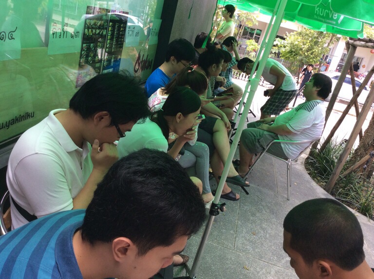พอดีเพื่อน จขกท. แชร์เฟสของร้านว่า ยกเลิกการจองทั้งหมดและรับลูกค้าwalk-in only ถึงกลับมามีไฟในการกิน วันพุธจัดไป ไปร้านราวๆ12:40 คนเต็มทั้งวันแล้ว orz พลาดเป้าอย่างน่าเสียดาย คราวนี้ทำการบัานบ้างละ หาข้อมูลฯเล็กน้อย วันนี้ออกไปถึงร้านราวๆ11โมงครับ เจอคนดั่งภาพ(แอบหวั่นใจนิดๆ ถ้าไม่ได้กินคงไปคิงคอง ร9.แทน)
