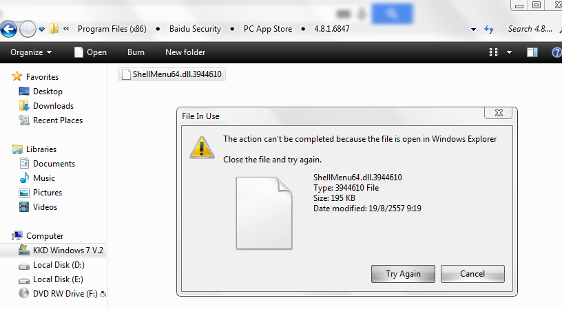 พี่ผมเอาคอมไปเล่นแล้วไม่รุเรื่องลง baiduมา ผมลบทุกอย่างออกเหลือแต่อันนี้ลบไม่ได้ลบแล้วมันบอกว่าไฟล์ใช้งานอยุแต่ก็ไม่รุว่ามันรันอยุตรงไหน