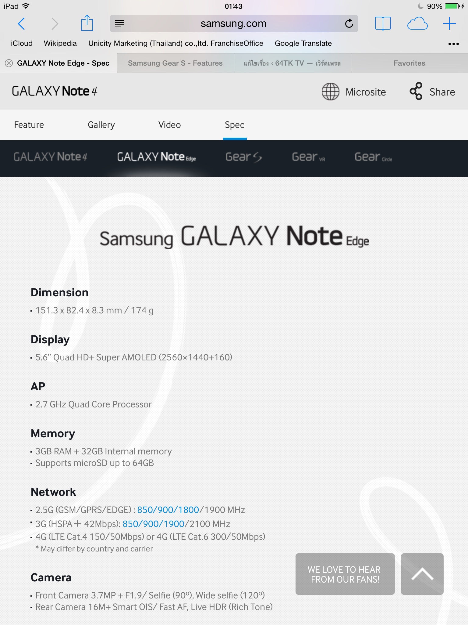 เป็นที่แน่นอนแล้วว่า Samsung ไทยนำ Samsung Galaxy Note 4 จำหน่าย CPU เป็นรุ่น Exynos 5433 ระบบ 64Bit แต่ไม่นำรุ่น Snapdragon 805 เข้ามา เพราะมี Samsung Galaxy Note Edge เข้ามาจำหน่ายเป็น CPU รุ่น Snap