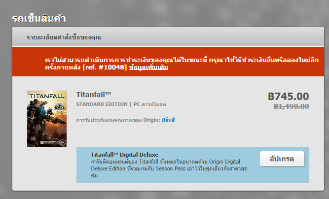 ชำระเงินล้มเหลว ORIGIN แก้ไงครับ T . T (มีภาพ)
