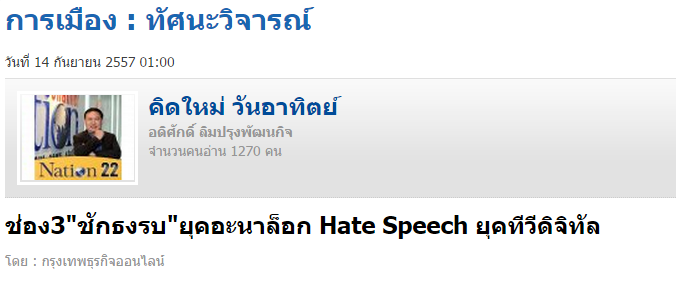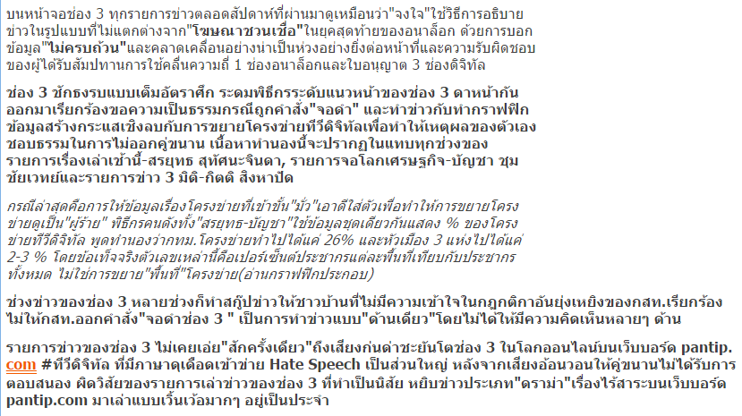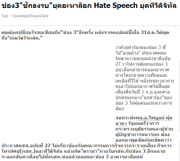 ช่อง3"ชักธงรบ"ยุคอะนาล็อก Hate Speech ยุคทีวีดิจิทัล โดยกรุงเทพธุรกิจออนไลน์