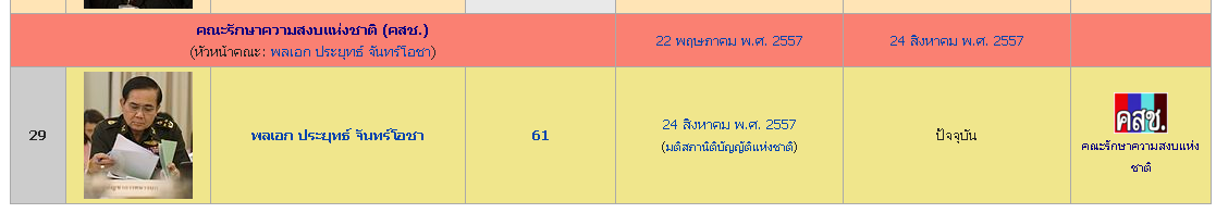 พลเอก ประยุทธ์ จันทร์โอชา นายกรัฐมนตรีคนที่ 29 ของไทย