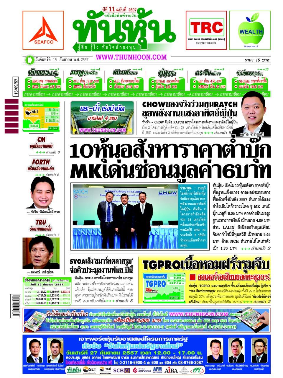 ข่าวหุ้น... พรุ่งนี้ ( 15 ก.ย. 57 ) +++++++++ สรุป...การซื้อเก็บหุ้นของผู้บริหาร ในเดือนกันยายน 57