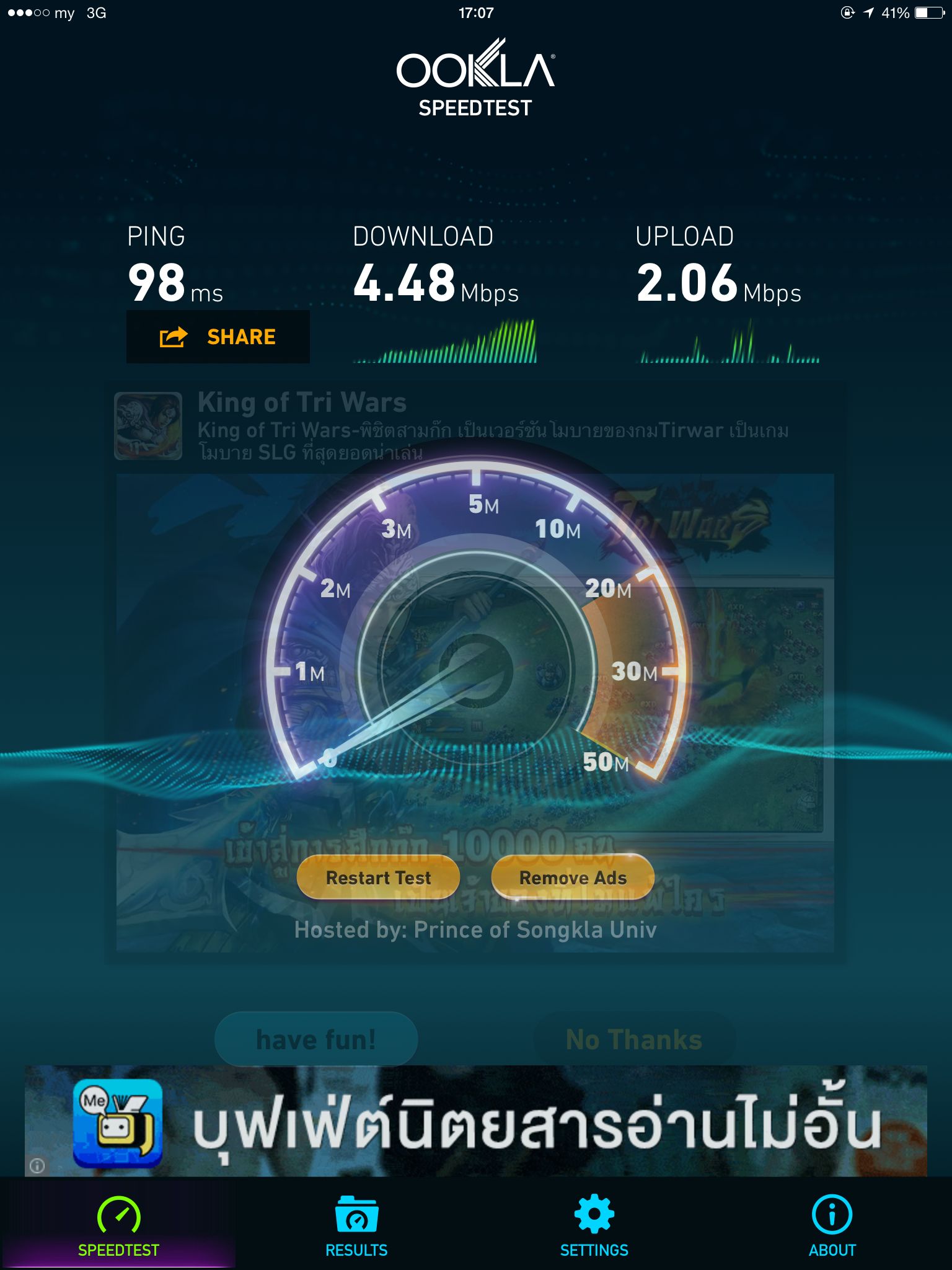 My 3 G Speed test รอบดึก