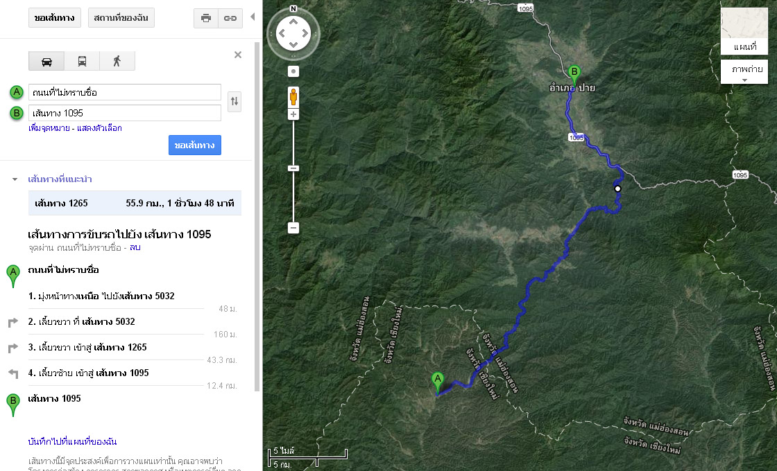 เพิ่งจะสังเกตว่า ตอนนี้ Google Map ได้อัพเดท Street View ในเส้นทางภาคเหนือเพิ่มเติม โดยครอบคลุมจังหวัดแม่ฮ่องสอนแล้ว ซึ่งน่าจะเป็นประโยชน์สำหรับผู้ที่จะเดินทางท่องเที่ยว ในช่วงสิ้นปีนี้ เส้นทางที่สาม