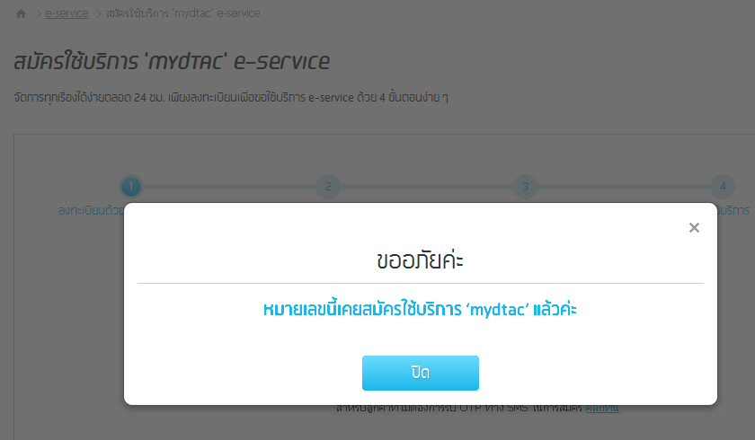 พอจะลงทะเบียน E-SERVICE ระบบแจ้งว่าเบอร์นี้ลงทะเบียนแล้ว