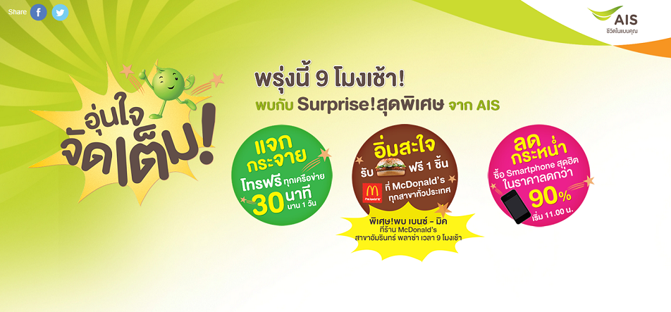 มาแล้ววว !!! อุ่นใจ จัดเต็ม !!! Surprise จาก AIS #แจกกระจาย #อิ่มสะใจ #ลดกระหน่ำ [พรุ่งนี้ 9 โมงเช้า 17/09/57]