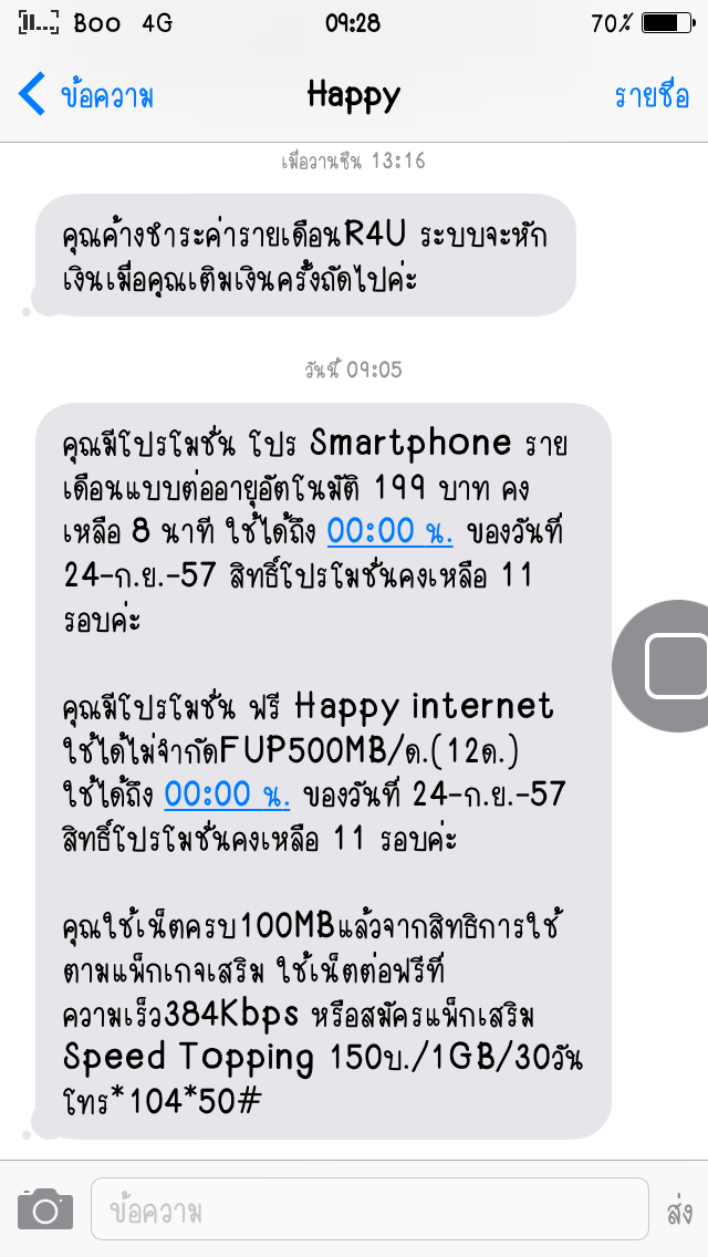 เรื่องมีอยู่ว่า ผมสมัครโปรสมาร์ทโฟน 199 ของแฮปปี้ แล้วที่นี้พอ ซึ่งเค้าบอกว่า FUP 500Mb แต่ว่า!!พอใช้เน็ตครบ100Mb กลับมาลดความเร็วเหลือแค่384 kb ?? คืออะไร?? ถ้าเป็นแบบนี้ไม่นานคงย้ายค่าย แน่ๆ เหอะๆ