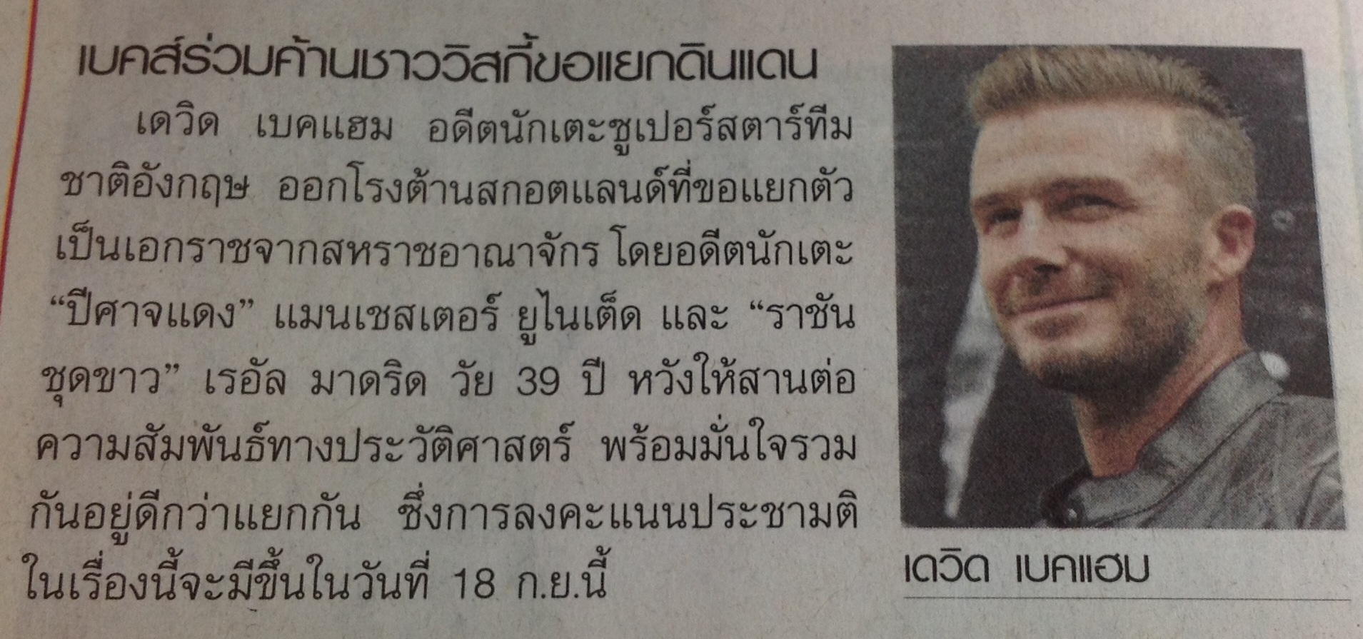 จากข่าว "เดวิด เบคแฮม" ออกโรงต้าน "สกอตแลนด์" ที่ขอแยกตัวเป็นเอกราช คุณคิดเห็นอย่างไรบ้าง