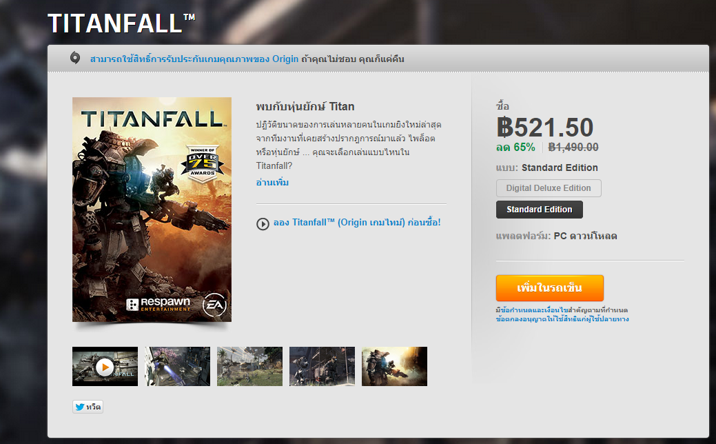 ในวันอาทิตเพิ่งซื้อTitanfall ด้วยราคา 745 บาท แพงกว่าตอนนี้ราวๆ200บาท T.T
