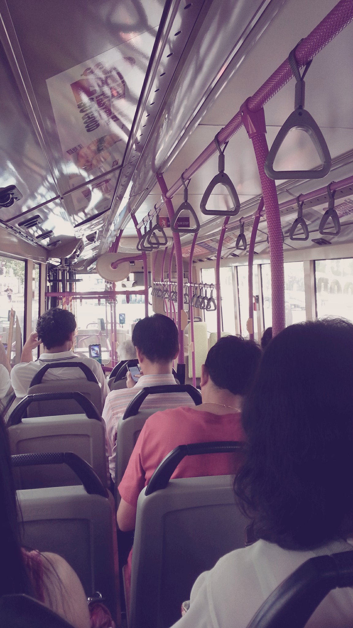ที่ป้ายรถบัสจะมีบอกว่าสายไหนไปไหน เห็นไชน่าทาวน์ก็ขึ้นเลยจร้า สายไรไม่รู้ จำมะได้