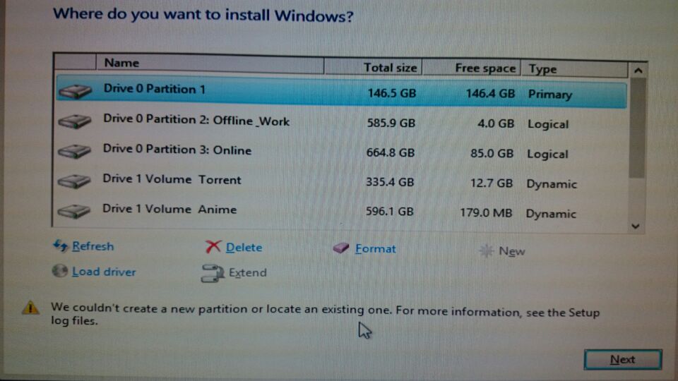 ตามภาพเลยครับ ภาพแรกหลังจากที่จะลงวินโดว์ตามปกติก็ Format ตามปกติ เสร็จแล้วพอจะกด Next มันก็ขึ้นข้อความฟ้องมาตามรูปที่1ครับ