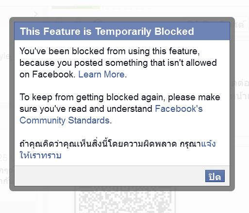 โดนบล็อกคุณสมบัติการใจงานบนเพจเฟสบุ๊ค