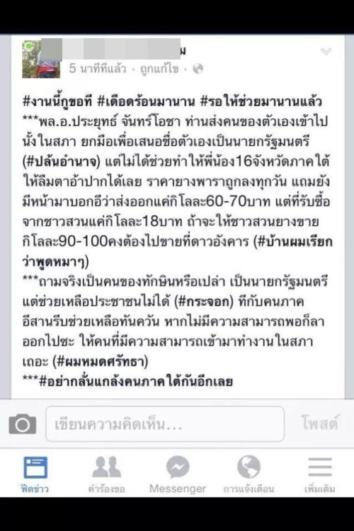 ขอร้องพี่น้องชาวใต้ที่เดือดร้อนเรื่องยาง อย่าแสดงความเห็นแบบนี้เลยครับ ให้เวลาท่านนายกตู่ได้ทำงานบ้าง