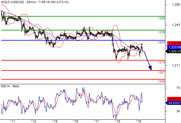 Comment: As long as 1231 is resistance, likely decline to 1215.