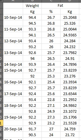 (เคยสงสัยว่าเครื่องมีปัญหา แต่ว่ามีเครื่องชั่งน้ำหนักสามอัน วัดไขมันได้สองอัน เอาเลขมาเทียบกันได้ไม่เท่ากันแต่ว่าค่าที่ได้ก็แกว่งมากเหมือนกัน)
