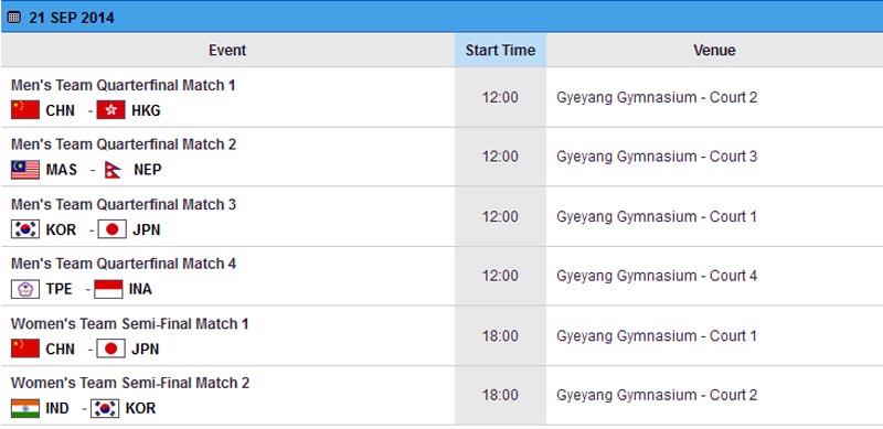 http://www.incheon2014ag.com/Sports/Schedule/BySport/BD0000000?Date=20140921&lang=en#/Sports/Schedule/BySport?RSC=BD0000000&Date=20140921&lang=en
