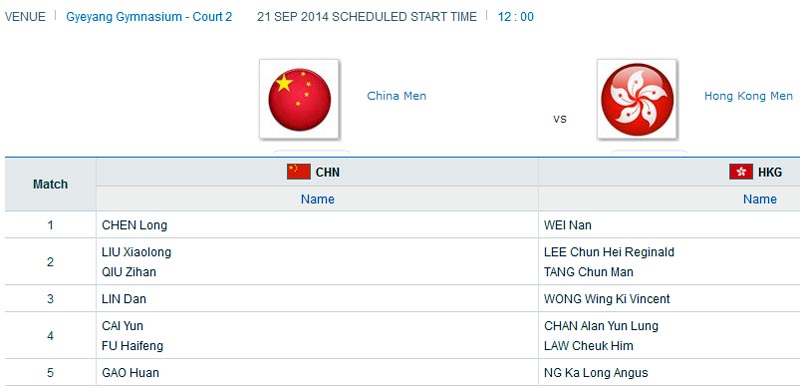 โปรแกรมการแข่งขันแบตมินตัน Asian Games Incheon 2014 : 21-09-2014
