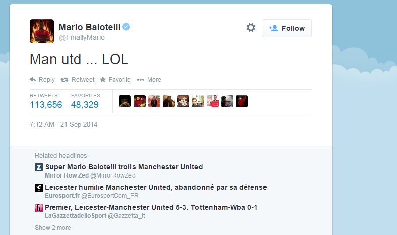 มาริโอ บาโลเตลี ทวีตหลังเกมส์ เลสเตอร์ - แมนยู
